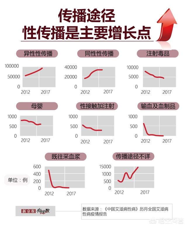 Le New Beijing News a établi des statistiques sur la base des données du rapport national sur l'épidémie de SIDA et de MST, et a constaté que la proportion de SIDA sexuellement transmissible a augmenté de manière significative ces dernières années, et que les cas de maladies sexuellement transmissibles représentent eux-mêmes une grande partie du nombre total de cas.