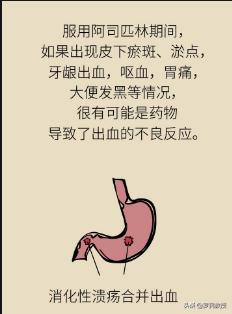 L'utilisation à long terme de l'aspirine inhibe l'agrégation des plaquettes, ce qui peut entraîner des saignements du tractus gastro-intestinal du patient, qui se manifestent principalement par une perte d'appétit, des douleurs épigastriques, une sensation de brûlure, des selles noires et d'autres symptômes.
