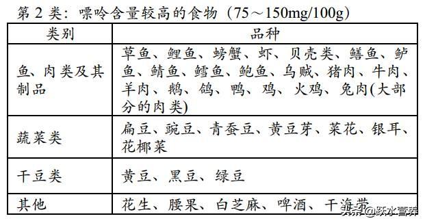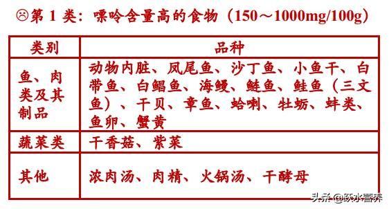 Les purines sont largement présentes dans l'alimentation, en particulier dans les viandes animales, les poissons et les crevettes, les noix, les haricots secs, les champignons secs, le varech sec, etc. qui contiennent beaucoup de purines.