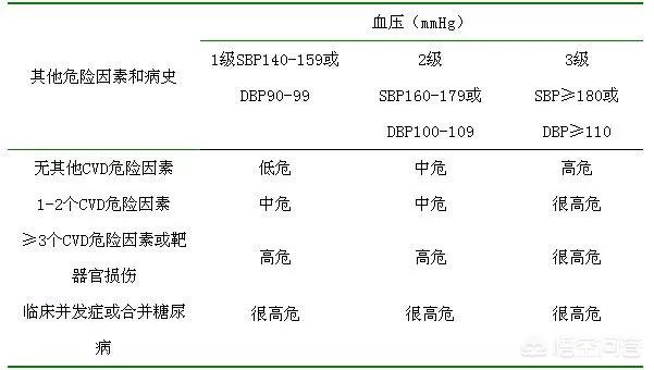 Les patients souffrant d'hypertension peuvent être classés comme présentant un risque faible, un risque intermédiaire, un risque élevé et un risque très élevé en fonction de la présence ou de l'absence de comorbidités ou de lésions organiques, ainsi que du degré d'élévation de la pression artérielle. Plus il y a de comorbidités, plus les organes sont endommagés, ou plus la tension artérielle est élevée, plus le niveau de risque du patient est élevé. Ici, la pression artérielle n'est qu'une référence pour le regroupement des patients, mais pas une référence absolue, une fois que le patient présente des comorbidités ou une pression artérielle très élevée atteignant le troisième niveau ou plus, la classification du patient peut être à très haut risque, ce qui est souvent une référence importante et un reflet de la gravité de l'hypertension artérielle du patient, ou de son caractère dangereux.
