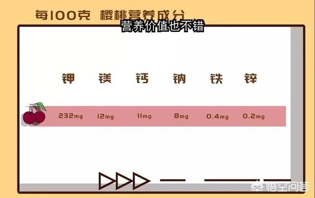 En outre, la teneur en carotène et en potassium de la cerise est également très élevée : 210 microgrammes de carotène pour 100 grammes, soit 10 fois plus que les pêches et les pommes, et 4 fois plus que les raisins ; 232 mg de potassium pour 100 grammes, soit plus de deux fois plus que les pommes, les pêches et les raisins ; la cerise est donc très chère, mais cette cherté a quelques raisons.