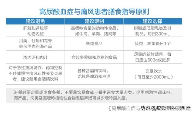 Le contrôle de l'hyperacidité urique ne se limite évidemment pas à la prise de médicaments contre l'hyperacidité urique, la régulation de la vie est également un aspect important, nous disons souvent que la régulation de la vie doit contrôler la bouche et ouvrir les jambes. Le contrôle du régime alimentaire est un aspect important de la régulation de l'hyperacidité urique, et de nombreux amis ont certains malentendus sur la compréhension de la régulation du régime alimentaire, qu'il y a un problème d'hyperacidité urique, vous devriez "manger l'ivraie et avaler les légumes", un peu de viande ne peut pas être trempé dans un aliment riche en protéines ne peut pas être mangé, mais en fait ce n'est pas le cas, une structure alimentaire raisonnable et saine pour le corps de maintenir un apport suffisant en nutriments pour l'organisme est une bonne chose. Un apport suffisant en nutriments pour que l'organisme se maintienne, mais pas trop d'apport en purine, voilà la véritable signification de la prise en charge diététique de l'hyperacidité urique.