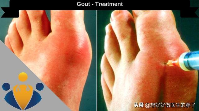 La partie la plus difficile du problème de la goutte n'est jamais le contrôle de la douleur lors d'une crise aiguëSi la douleur est sévère, nous pouvons la contrôler avec de la colchicine ou des AINS par voie orale, et si elle est plus sévère, nous pouvons administrer une anesthésie locale pour aider le patient à contrôler la douleur, et il y a toujours des moyens d'aider le patient à passer la phase aiguë.