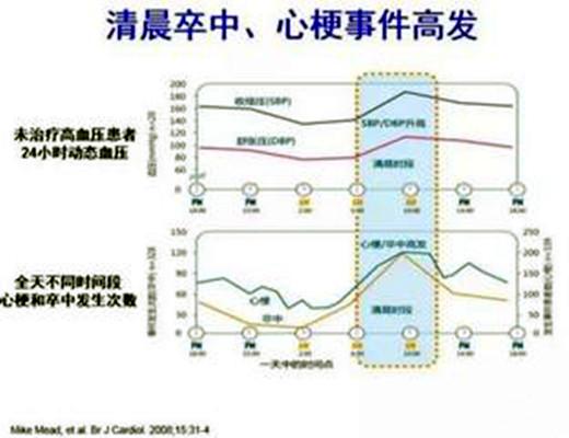 Le premier pic de tension artérielle a lieu tôt le matin après le réveil, à ce moment-là, les deux systèmes s'échangent, le système nerveux sympathique est le plus actif, il est donc facile d'influencer la tension artérielle, la fréquence cardiaque, les patients souffrant de maladies cardiovasculaires peuvent facilement avoir des problèmes à ce moment-là, la survenue d'une urgence, qu'il s'agisse d'un infarctus du myocarde ou d'un accident vasculaire cérébral, est plus fréquente à ce moment-là. C'est également une période dangereuse pour les patients atteints de maladies cardiovasculaires.