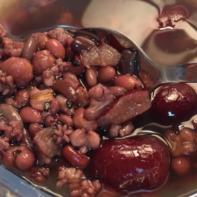 Pratique : larmes de Job, haricots noirs, algues, haricots rouges, dans un rapport de 1:1, versés dans la marmite, ajouter la quantité appropriée de dattes rouges et de baies de loup en ragoût.