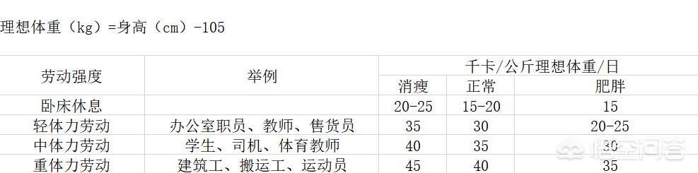 Calculez correctement votre apport énergétique quotidien (kcal) = poids corporel standard (kg) x énergie requise pour différentes intensités de travail kcal/(kg-d)