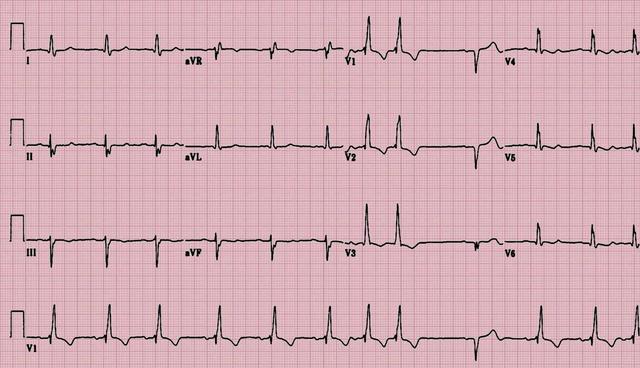 L'électrocardiogramme en rythme sinusal doit remplir les deux conditions suivantes : (1) Les ondes P sont droites dans les dérivations I, II et aVF, et l'aVR est inversée. (2) Intervalle P-R de 0,12 à 0,20 seconde. L'oreillette droite du corps humain comporte un petit nodule spécial composé de cellules spéciales appelé nœud sinusal. L'électrocardiogramme montre des ondes P sinusales avec une fréquence d'ondes P inférieure à 60 battements par minute et un intervalle PR supérieur à 0,12 seconde.