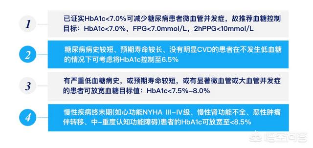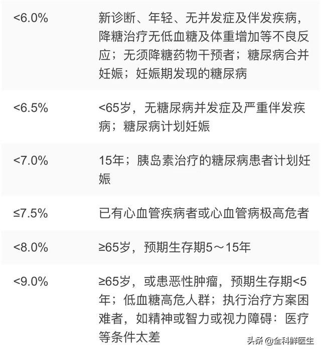 En raison du rôle important de l'hémoglobine glyquée, des objectifs individuels de contrôle de l'hémoglobine glyquée ont également été fixés en fonction de la durée de la maladie, des complications, des affections concomitantes, de l'âge et de l'espérance de vie du patient.
