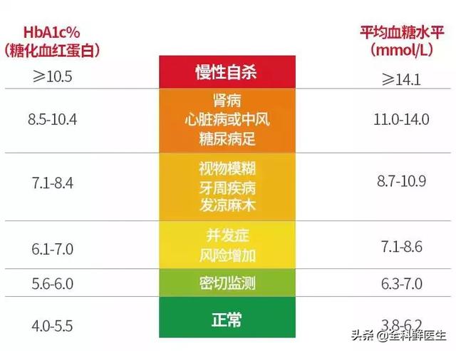 La valeur normale de l'hémoglobine glyquée chez une personne en bonne santé est de 4 à 6,0 % (les données peuvent varier d'un laboratoire à l'autre). Si l'hémoglobine glyquée dépasse 7,0 %, cela signifie que le contrôle de la glycémie n'est pas conforme à la norme et que diverses complications macrovasculaires et microvasculaires du diabète peuvent survenir, ce qui peut entraîner des maladies rénales, des maladies oculaires, des maladies des pieds, etc. ainsi que des dangers tels que l'infarctus du myocarde et l'infarctus cérébral.
