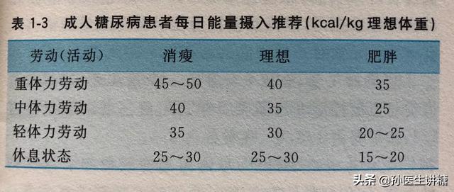 En outre, le poids du patient, qu'il soit normal, mince ou obèse, doit être pris en compte dans le processus de thérapie diététique. Les patients diabétiques obèses doivent être adaptés aux travaux physiques lourds. Les patients de poids normal doivent réduire les calories (5 kcal par kilogramme de poids corporel par jour), soit 35 kcal par kilogramme de poids corporel par jour ; en même temps, augmenter l'apport en protéines d'environ 20 %. Supplémentation en vitamines et minéraux.