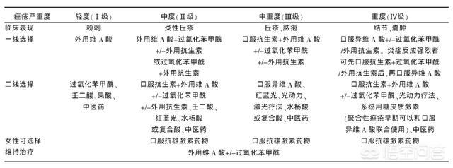 Le classement de l'acné est une base importante pour la sélection du plan de traitement de l'acné et l'évaluation de l'efficacité. Actuellement, il existe plusieurs méthodes de classification internationales, et les directives chinoises sur le traitement de l'acné (révision 2019) classent l'acné en 3 degrés et 4 grades, principalement en fonction de la nature des lésions, à savoir :