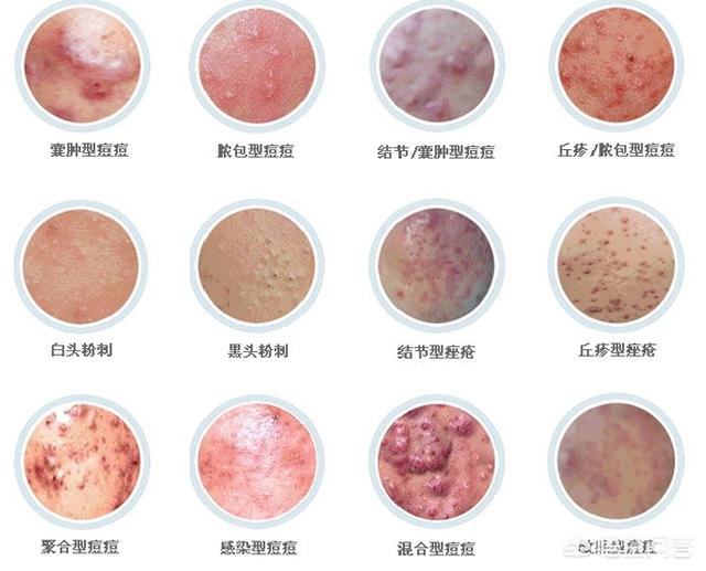 Deuxièmement, du point de vue de la médecine occidentale, l'acné est une sorte de lésion cutanée due à une sécrétion accrue de sébum par les glandes sébacées folliculaires, à une kératinisation excessive des canaux des glandes sébacées, ce qui entraîne une mauvaise excrétion du sébum, à une infection et à d'autres raisons. Ses manifestations comprennent les boutons, les papules inflammatoires, les nodules, les pustules superficielles, les kystes, les cicatrices, etc. Les boutons sont une manifestation cutanée de l'acné. L'un est donc le nom de la maladie et l'autre celui de la lésion cutanée.