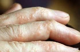 Initialement - petites vésicules profondes, dispersées ou regroupées sur la paume des mains et sur les côtés des doigts et entre les doigts, souvent accompagnées de démangeaisons.