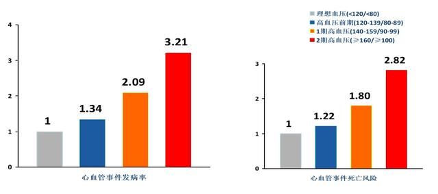 Les dommages et les risques de l'hypertension pour le corps humain augmentent avec la pression artérielle, et le risque d'accident vasculaire cérébral, de maladie coronarienne et de décès par maladie cardiovasculaire sont tous directement proportionnels à l'augmentation de la pression artérielle. On a constaté que pour chaque augmentation de 20 mmHg de la pression artérielle systolique ou de 10 mmHg de la pression artérielle diastolique, le risque de maladie cardiovasculaire est multiplié par deux. De l'hypertension de grade 1 à l'hypertension de grade 3, le risque de maladie cardiovasculaire est multiplié et multiplié pour chaque augmentation de 40 mmHg de la pression artérielle systolique et de 20 mmHg de la pression artérielle diastolique.