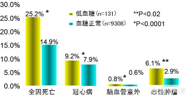 Les patients hypoglycémiques ont un taux élevé de mortalité totale.