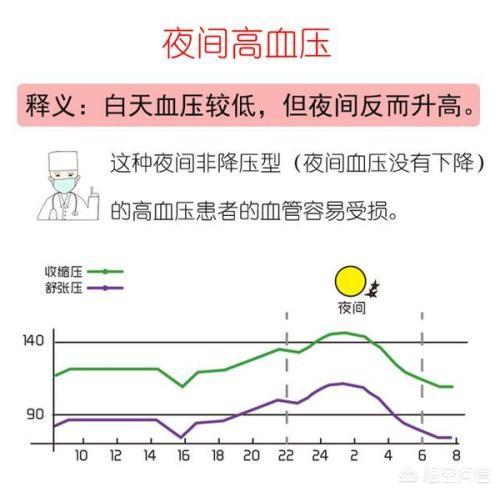 2) Il existe cependant un petit nombre de personnes dont la tension artérielle ne diminue pas la nuit et peut même être supérieure à la tension artérielle diurne. Si la tension artérielle nocturne diminue de <10 % par rapport à la tension artérielle diurne, on parle de tension artérielle non polygonale ; si la tension artérielle nocturne est supérieure de 5 % à la tension artérielle diurne, on parle de tension artérielle antipyrétique.Ce type de patients hypertendus peut adapter de manière appropriée l'heure de la prise des médicaments, en choisissant de les prendre entre 16 et 18 heures.