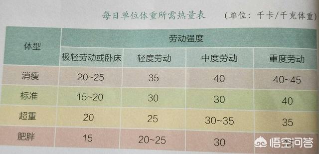- Tableau des besoins quotidiens en calories par unité de poids corporel :