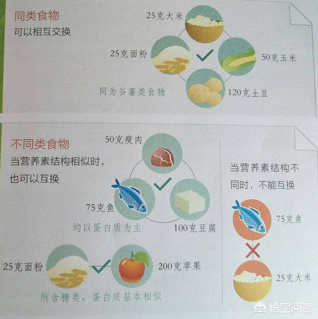 4) Normaliser sa glycémie par des échanges alimentaires.Méthode des portions d'échange : 1 portion d'échange = 90 kcal. Nous classons les différents aliments en 6 grands groupes en fonction des valeurs approximatives des nutriments qu'ils contiennent : 1) céréales et pommes de terre, 2) légumes, 3) fruits, 4) viandes maigres, 5) soja et lait, et 6) graisses et huiles. Dans chaque catégorie, le poids de l'aliment qui peut fournir 90 kcal est considéré comme une portion d'échange, et des aliments similaires peuvent être échangés entre eux. En résumé, sans augmenter le nombre total de calories tout au long de la journée, les aliments peuvent être remplacés les uns par les autres selon les principes de calories égales et de nutriments similaires.