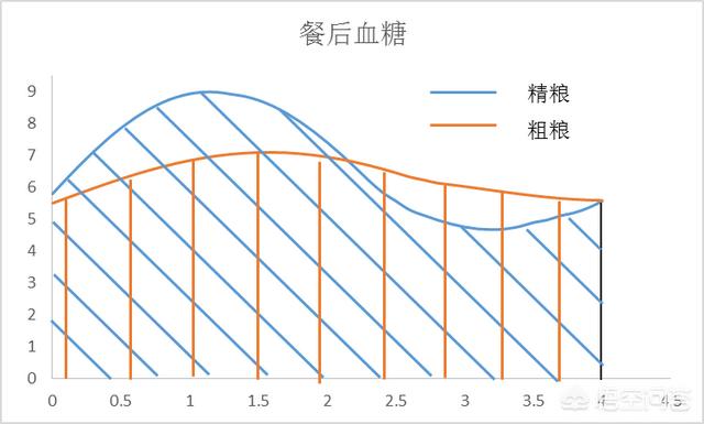 Tout d'abord, examinons deux séries de courbes, qui représentent la tendance générale des variations de la glycémie postprandiale lorsqu'une personne ne mange que des céréales raffinées et lorsqu'elle mange un mélange de céréales fines et de céréales secondaires. Il se peut que de nombreuses personnes ne comprennent pas cela, aussi permettez-moi de l'expliquer brièvement.