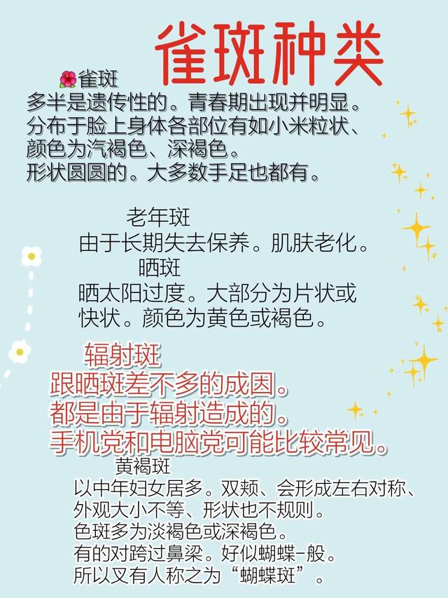 Les sœurs savent que les types de taches pigmentaires sont les taches de rousseur, les taches solaires, le chloasma, les taches rénales, les taches de vieillesse et les taches hormonales 😰. Toutes ces taches sont particulièrement effrayantes et font super baisser la valeur de notre visage.