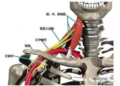 Entre les muscles trapèze antérieur et moyen et la première côte, il se forme un espace triangulaire, appelé espace trapézoïdal, dans lequel passent l'artère sous-clavière et les nerfs du plexus brachial. Hypertrophie ou spasme du muscle oblique antérieurPeut comprimer l'artère sous-clavière et le plexus brachialgénérermaux de tête et vertigesSyndrome du muscle oblique antérieur.