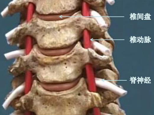 Tout d'abord, comme vous pouvez le voir ci-dessus, les vertiges causés par la spondylose cervicale sont rares et sont principalement dus à la spondylose cervicale de type artère vertébrale. Comme le montre la figure ci-dessous, la colonne vertébrale cervicale est formée par l'assemblage des vertèbres cervicales pièce par pièce, et chaque os cervical est généralement précédé d'un os rond, appelé vertèbre, et lorsque chaque vertèbre cervicale est reliée, il y a un coussin mou entre les vertèbres, ce qui constitue le fameux "coussin"."Disques intervertébraux"La plupart des vertèbres cervicales sont traversées de part et d'autre par un petit foramen (foramen transverse), qui prend la forme de deux vaisseaux sanguins importants qui alimentent le cerveau : l'ischémie cérébrale (ou l'ischémie de la moelle épinière) et l'ischémie de la moelle épinière (ou l'ischémie de la moelle épinière).artère vertébrale(partie rouge de l'image ci-dessous).
