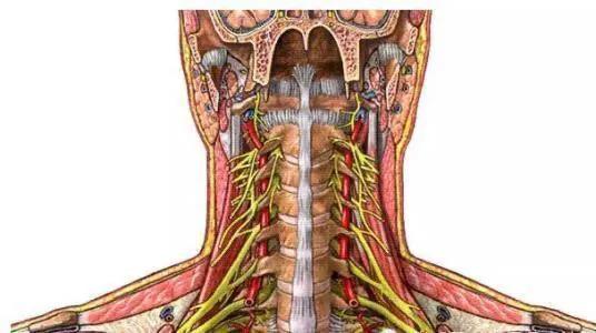Autour des vertèbres cervicales, en plus des tissus musculaires, etc.Sur le côté se trouvent les importantes artères carotides, qui constituent la ligne de vie alimentant le cerveau en sang ; elles sont également traversées par des nerfs autonomes, ainsi que par l'œsophage et la trachée.