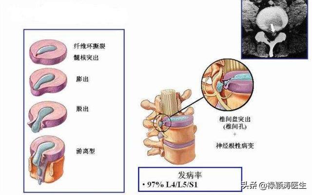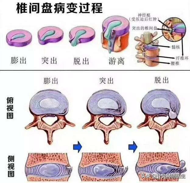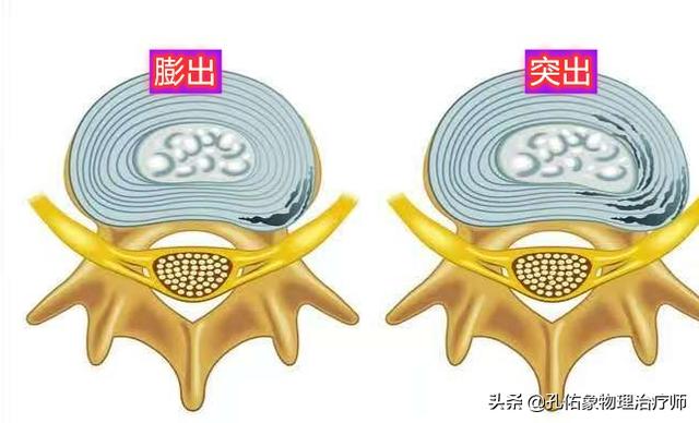 Commençons par le gonflement du disqueLe disque est entouré par l'anneau fibreux, la partie interne de la rupture, mais la couche externe est intacte. À ce moment-là, le noyau pulpeux, sous l'effet de la pression exercée sur le canal vertébral, est limité à un bombement, mais la surface est lisse. Cet état est comparable à celui d'un pneu de voiture gonflé qui n'a pas éclaté, mais dont la partie faible gonfle comme un gros sac sous l'effet de la pression.