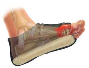 La goutte se manifeste le plus souvent par un gonflement douloureux au niveau de la première articulation métatarso-phalangienne du pied.