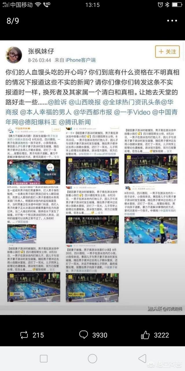 Pour un médecin de Deyang, il est tout à fait anodin d'être dans la piscine et d'avoir un frottement. En prenant les transports publics, en faisant du sport, en voyageant, ne peut-il pas y avoir une petite collision ? Cependant, une fois qu'il est signalé, en particulier par des fonctionnaires, il s'agit d'un crime grave qui suscite la colère de l'opinion publique ! Cela ne tue-t-il pas des gens ?