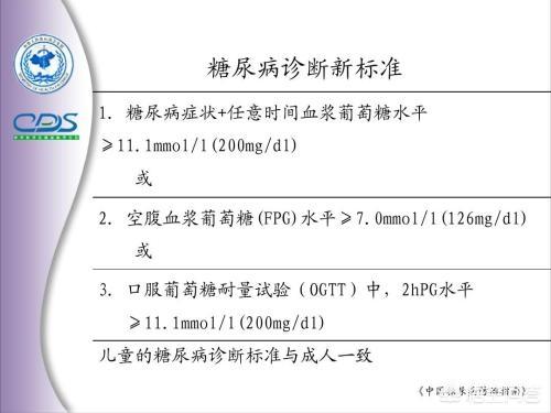 Les critères de jugement varient certainement d'un âge à l'autre, et les médecinsEn fonction de la durée de la maladie, de l'âge du patient, etc.. Cependant, une glycémie aléatoire ≥11,1 mmol/L, une glycémie à jeun ≥7,0 mmol/L et une glycémie sur 2 heures ≥11,1 mmol/L après un test de tolérance au glucose (OGTT) peuvent être utilisées pour le diagnostic initial.