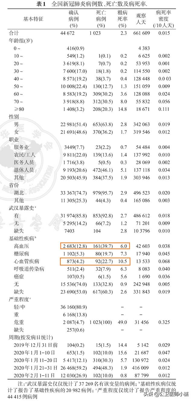 Publié par le groupe d'épidémiologie des mécanismes de réponse à la pneumonie à nouveau coronavirus, Centre chinois de contrôle et de prévention des maladies (CDC)Caractérisation épidémiologique de la nouvelle pneumonie à coronavirus.L'article stipule qu'à partir du 11 février 2020, les données collectées sur le site Internet de l'Union européenne (UE) seront disponibles.Sur les 72 314 patients, 2 683 étaient hypertendus.12,8 % de l'ensemble des patients ;Parmi eux, 161 sont décédés, soit un taux de mortalité brut de 6,0 %, ce qui signifie que près de 6 personnes sur 100 étaient sur le point de mourir.