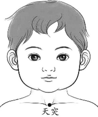 2) Opération spécifique : en pointant et en pressant le point Tiantu, le pouce est d'abord légèrement plié, puis l'extrémité avant du pouce est proche du point et exerce une force verticale vers le bas. Les points de pression du pouce doivent être rythmés, de manière à ce que les activités des mucosités dans la gorge, si nécessaire, puissent être accélérées en chatouillant doucement l'extrémité du pouce jusqu'au degré de démangeaison de la gorge, avec l'aide du mouvement des mucosités de la gorge lorsqu'on tousse un peu, les mucosités pouvant être évacuées.