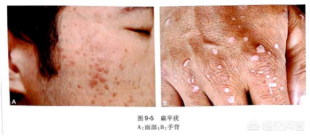 Les verrues planes, qui sont des lésions cutanées dues à une infection par le virus du papillome humain (VPH).Elles apparaissent sur le dos des mains, le visage, le cou, les poignets, les genoux et les avant-bras. Elles sont d'abord aussi fines qu'un grain de riz, puis atteignent progressivement la taille d'une fève de soja ;Papules plates et lisses à la surface de la peauElle est ronde, ovale ou polygonale, de couleur normale ou brune, nombreuse ou plus nombreuse, bien délimitée, et peut être densément répartie ou disposée en lignes en raison d'un grattage local, et les lignes voisines peuvent être fusionnées les unes avec les autres.Il n'y a généralement pas de symptômes conscients, et certains patients ressentent de légères démangeaisons. L'évolution de la maladie est lente, peut durer de nombreuses années, et il s'agit d'une maladie cutanée bénigne. Elle s'auto-infecte et peut également se transmettre d'un organisme à l'autre. Certains patients peuvent guérir seuls, sans cicatrice, après guérison.