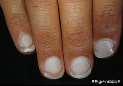 7. les ongles blancs : également appelés "ongles de Terry" en médecine, ils sont généralement le signe d'une maladie du foie, telle que l'hépatite ou une cirrhose grave du foie.