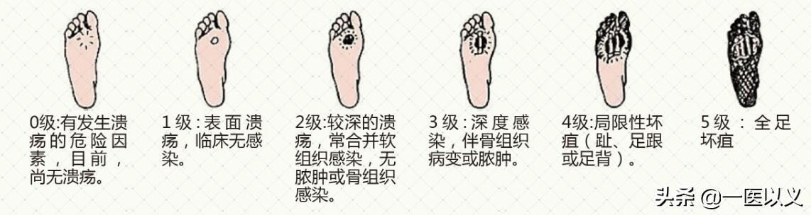 - Dans les stades avancés du pied diabétique, des ulcères circulaires pénétrants se développent dans les muscles métatarsiens et les os métatarsiens, ainsi que dans d'autres tissus du pied et des os métatarsiens.Cet ulcère survient après l'infection, il y a une surface infectée durable, souvent une couverture de mousse blanche épaisse visible, ces changements purulents émettent une mauvaise odeur caractéristique, j'ai une fois changé le médicament pour deux patients souffrant d'infections du pied diabétique, c'est vraiment une odeur inoubliable à vie, j'ai porté deux couches de masques, et aussi la manifestation d'un déchaussement sec. L'infection est très difficile à guérir. Finalement, le membre affecté développera une gangrène ischémique sévère, c'est-à-dire que les orteils deviendront noirs, secs et tomberont, etc. et dans les cas graves, l'amputation est nécessaire.