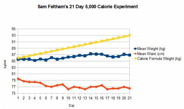 Il y a des expériences à l'étranger, le Britannique Sam Feltham a étudié l'impact de l'alimentation riche en graisses et pauvre en carbone sur le corps, il a participé à l'expérience pendant 21 jours, avec un apport quotidien de 5 000 calories, ce qui contient un grand nombre d'aliments riches en graisses, son poids de départ était de 85,6 kg, à la fin de l'expérience, son poids était de 86,9 kg. Cependant, son tour de taille au début de l'expérience est de 79,5 cm, mais après l'expérience, le tour de taille est devenu 76,5 cm, vous avez bien lu, la raison de sa légère augmentation de poids corporel est que ses muscles deviennent plus importants, donc le tour de taille a rétréci ! Selon la théorie des partisans de la réduction de l'équilibre calorique, Sam devrait peser 92,9 kg après 21 jours d'expérience, mais les faits montrent que ce n'est pas le cas.