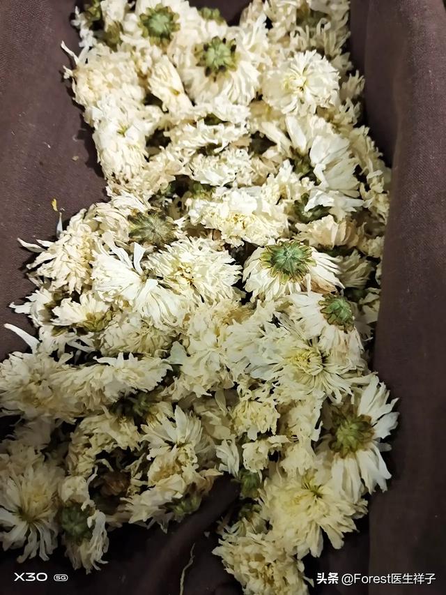 Le chrysanthème est de nature piquante, douce, amère et légèrement froide. Il a pour effet de disperser la chaleur du vent, d'éliminer la chaleur et les toxines, de calmer le yang du foie, d'éclaircir le foie et d'éclaircir les yeux.
