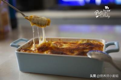 Patate douce au four avec de la crème. Pratiques alimentaires occidentales importées, teneur élevée en matières grasses, identiques aux patates douces frites, déconseillées.