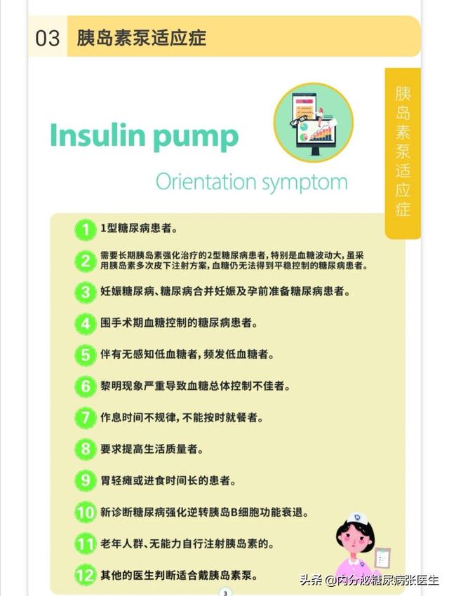 1. les diabétiques de type 1. Il s'agit de l'indication absolue pour les pompes à insuline. Lorsque les conditions économiques le permettent, la thérapie par pompe à insuline est la plus recommandée pour le diabète de type 1.