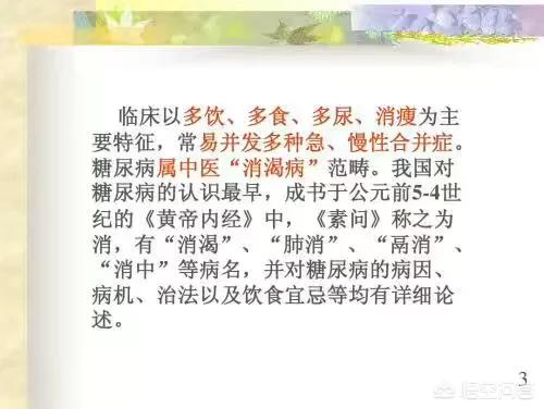 La médecine chinoise, en tant que médecine traditionnelle de la Chine, a enregistré que la principale manifestation de la maladie de la soif est "trois de plus et un de moins". Ceci est similaire à la compréhension actuelle. Les symptômes typiques du diabète sucré sont une consommation excessive d'alcool, une alimentation excessive, une miction excessive et une perte de poids, qui sont également connus sous le nom de symptômes "trois de plus et un de moins". En médecine chinoise, le diabète sucré est connu sous le nom de glycosurie. On distingue deux grands types d'obésité et d'émaciation : l'obésité, due à une surconsommation de graisses et de sucreries, à la sédentarité et à un manque d'activité, est le facteur déclencheur ; la plénitude de la chaleur interne est le mécanisme central ; elle est à l'origine de la plupart des cas de diabète sucré de type 2. Le type d'émaciation est principalement dû à la faiblesse des organes internes, aux émotions et aux points Zhifu Fuyu ou Wei comme facteurs initiaux, à la chaleur des points qi comme cœur de la maladie.