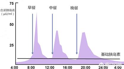 L'insuline à longue durée d'action, comme le glucagon et l'insuline détritique, peut durer de 20 à 24 heures ; l'insuline à courte durée d'action, comme l'insuline mentholée et l'insuline lysergique, agit généralement en 3 à 15 minutes. La courbe de sécrétion d'insuline d'une personne en bonne santé est illustrée dans la figure ci-dessous. Normalement, la sécrétion d'insuline basale est faible et il y a un pic de sécrétion d'insuline après un repas, qui est utilisé pour contrôler l'augmentation de la glycémie causée par l'alimentation. Afin de simuler la sécrétion normale d'insuline, l'insuline à action prolongée peut maintenir la stabilité de la glycémie pendant une période relativement longue, ce qui équivaut à l'insuline basale, et l'insuline à action brève peut réduire la glycémie postprandiale, ce qui équivaut à l'insuline sécrétée pendant le pic d'insuline postprandiale.