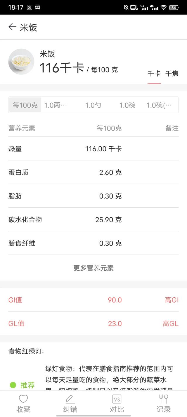 Voici une capture d'écran que j'ai prise dans Mint Nutritionist, regardons la capture d'écran des calories pour 100g de riz.
