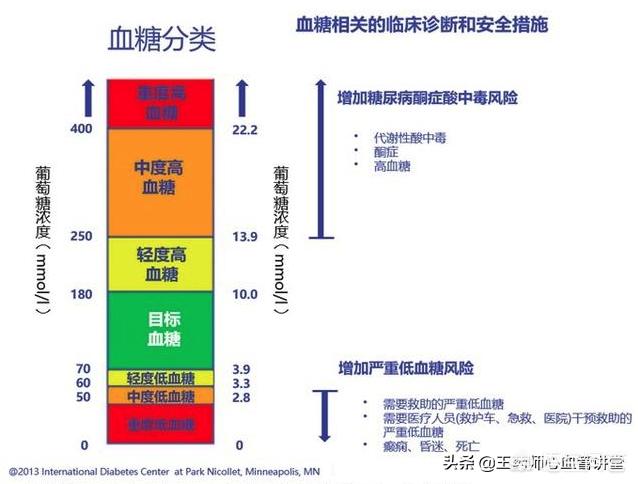 L'hypoglycémie est plus dangereuse que l'hyperglycémie, l'hyperglycémie est généralement tolérée ou peut l'être, mais l'hypoglycémie met la vie en danger, c'est pourquoi l'hypoglycémie est facile à abaisser, il faut fixer trois repas par jour, le mieux étant de transporter des bonbons, l'hypoglycémie étant immédiatement consommée.