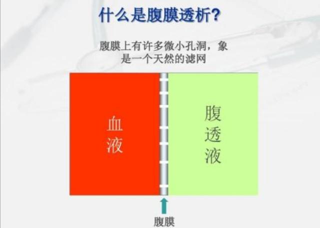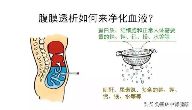 La dialyse péritonéale utilise le péritoine comme membrane semi-perméable et injecte du liquide péritonéal dans la cavité abdominale par un tube péritonéal, auquel une grande quantité de glucose est ajoutée pour augmenter l'osmolalité du liquide péritonéal, éliminant les toxines par le principe de dispersion, déshydratant par ultrafiltration et remplaçant la fonction excrétrice des reins.