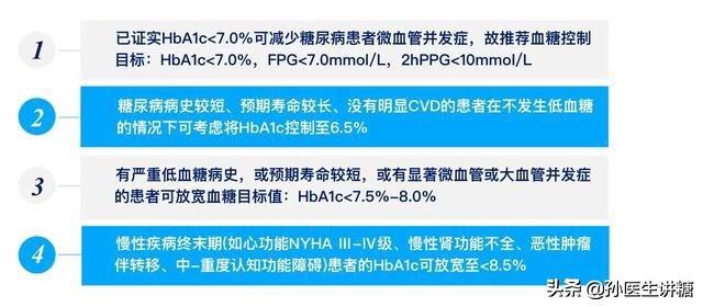 3. antécédents d'événements hypoglycémiques graves, comorbidités avec complications macrovasculaires ou microvasculaires graves、Dans le cas d'une espérance de vie plus courte, les critères peuvent être assouplis de manière appropriée pour inclure le taux d'hémoglobine glyquée.Contrôlé à <8,0 %.