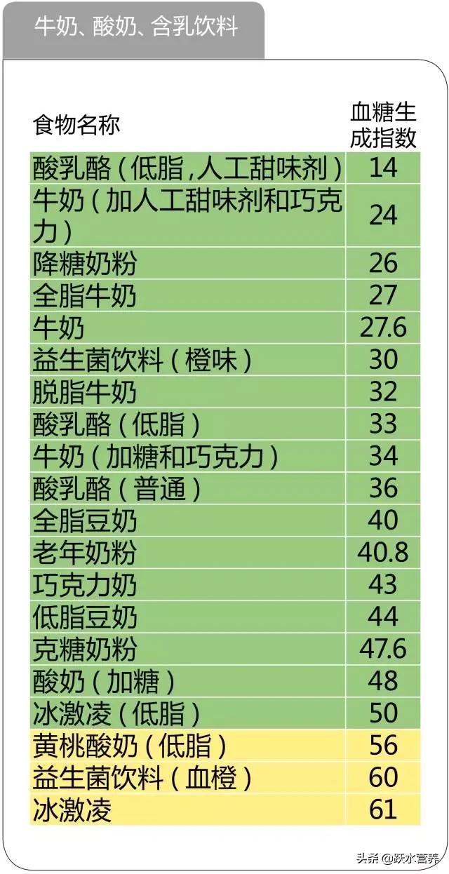 De l'index glycémique :Si l'indice glycémique (IG) est supérieur à 70, les patients diabétiques ne peuvent pas manger trop en une seule fois, tandis que si l'indice est inférieur à 55, les patients diabétiques peuvent manger de manière plus appropriée. L'index glycémique du lait n'étant que de 26, les patients atteints de diabète peuvent boire du lait sans problème.