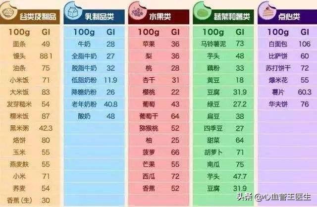 Les diabétiques choisissent autant que possible des aliments à faible IG, et les aliments à faible IG dans notre vie quotidienne se concentrent principalement sur les céréales et les légumes omnivores. (IG > 70 : aliment à IG élevé ; 55 < IG < 70 : aliment à IG moyen ; IG < 55 : aliment à IG bas)