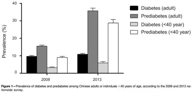 L'incidence du diabète a explosé en Chine au cours des dernières décennies. Dans les années 1980, l'incidence du diabète n'était que de 0,67 %, alors qu'en 2010, elle atteignait 11,6 %, soit une augmentation de près de 20 fois !