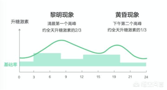 Dans l'organisme d'un patient atteint de diabète, ces deux pics n'ont pas assez d'insuline pour supprimer l'augmentation de la glycémie, ce qui, en l'absence d'autres facteurs tels que les repas, produit le phénomène de l'augmentation de la glycémie à jeun et de l'augmentation de la glycémie dans l'après-midi, respectivement, est appelé "augmentation de la glycémie à jeun" et "augmentation de la glycémie dans l'après-midi".phénomène de l'aube"et"le phénomène du crépuscule".